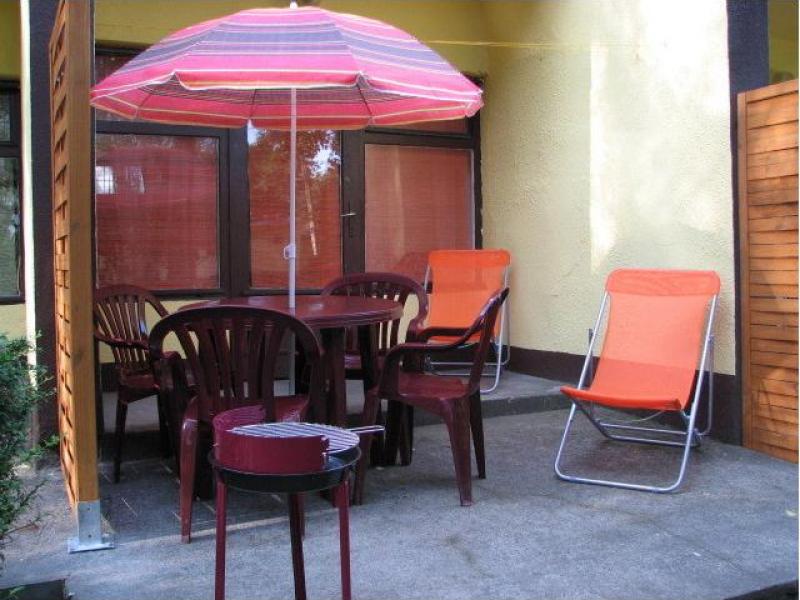 W każdym domku znajduje się 1 pokój 2 rozkladane wersalkami oraz łazienka oddzielona ścianką.